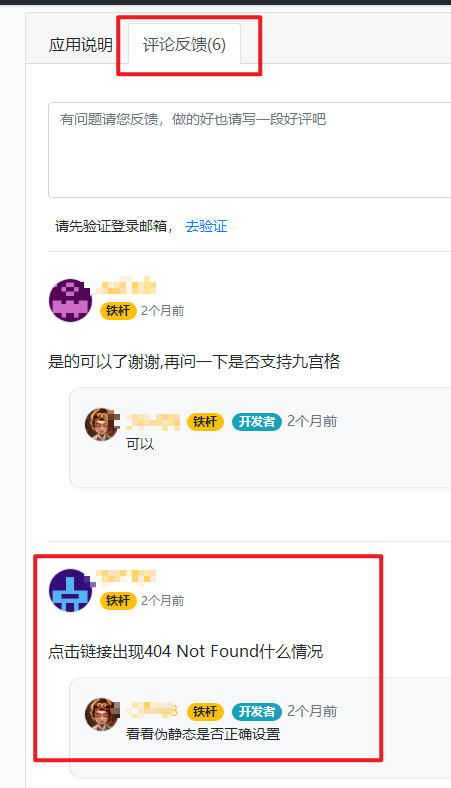 启用了[微语朋友圈]后,打开地址提示404,找不到页面去插件作者页面下找到问题反馈,有人也遇到过问题;根据指引,需要去网站设置伪静态,进行查找相关信息:1.现在博客后台查看:location / { index index.php index.html; if (!-e $request_filename){ rewri...